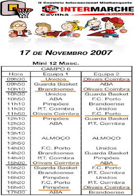 Manhã de 1 Novembro 2007, Feriado Nacional, mais de 120 crianças e alguns pais vieram encher de cor e movimento o nosso velhinho pavilhão. Agradecemos à Académica Coimbra, Telecom Coimbra, ao Sangalhos, ao Ginásio Fig. e ao Colégio Calvão a presença. Viva o Minibasquete...