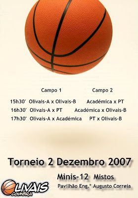 No dia 23 de Dezembro 2007, os Minis-12 Masculinos estiveram presentes no Convívio de Natal de Minibasquete de Viseu que se realizou no Pavilhão do Fontelo. Os nossos Minis continuam no bom caminho, sempre a marcar presença em todas as convocatórias feitas, sempre a querer estar presente, sempre a querer participar e jogar. Neste Convívio jogaram contra o ACERT, o Gumirães, o Diogo Cão e o GICAC.Com mais estes quatro jogos, os Minis-12 masc. já representaram esta Época (2007/2008) o Olivais Coimbra por 34 vezes.